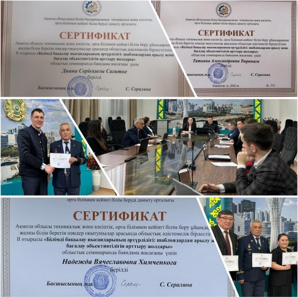Біздің педагогтар облыстық әдістемелік бірлестіктің жұмысына белсенді қатысып, білім беру сапасын арттыруға және оқу үдерісіне заманауи технологияларды енгізуге бағытталған өзекті, тәжірибеге негізделген тақырыптарды ұсынды.